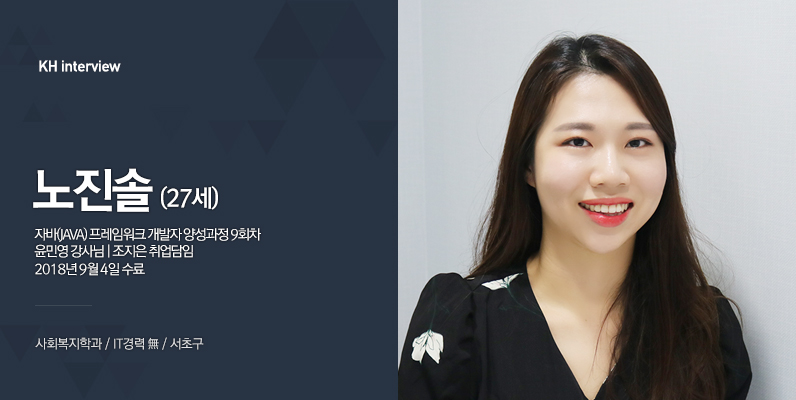 안녕하세요! 저는 자바 프레임워크 개발자 양성과정을 수료하는 노진솔이라고 합니다!