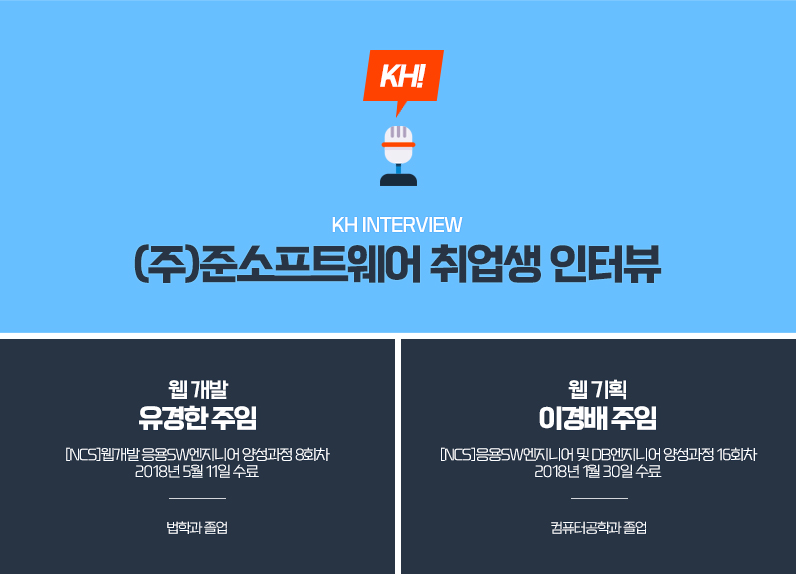 | 이경배 | 네. 취업 담임 선생님이 기업 추천도 많이 해주셨고 관련 정보도 많이 주셨기 때문에 저는 면접에 대한 걱정이 가장 컸어요. |