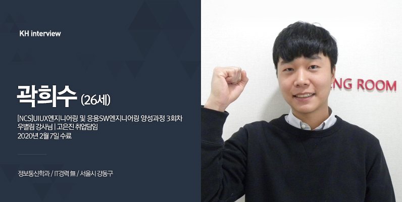 안녕하세요~! 서울 강동구에 거주하고 있는 26살 곽희수라고 합니다. 저는 정보통신학과를 전공했습니다.