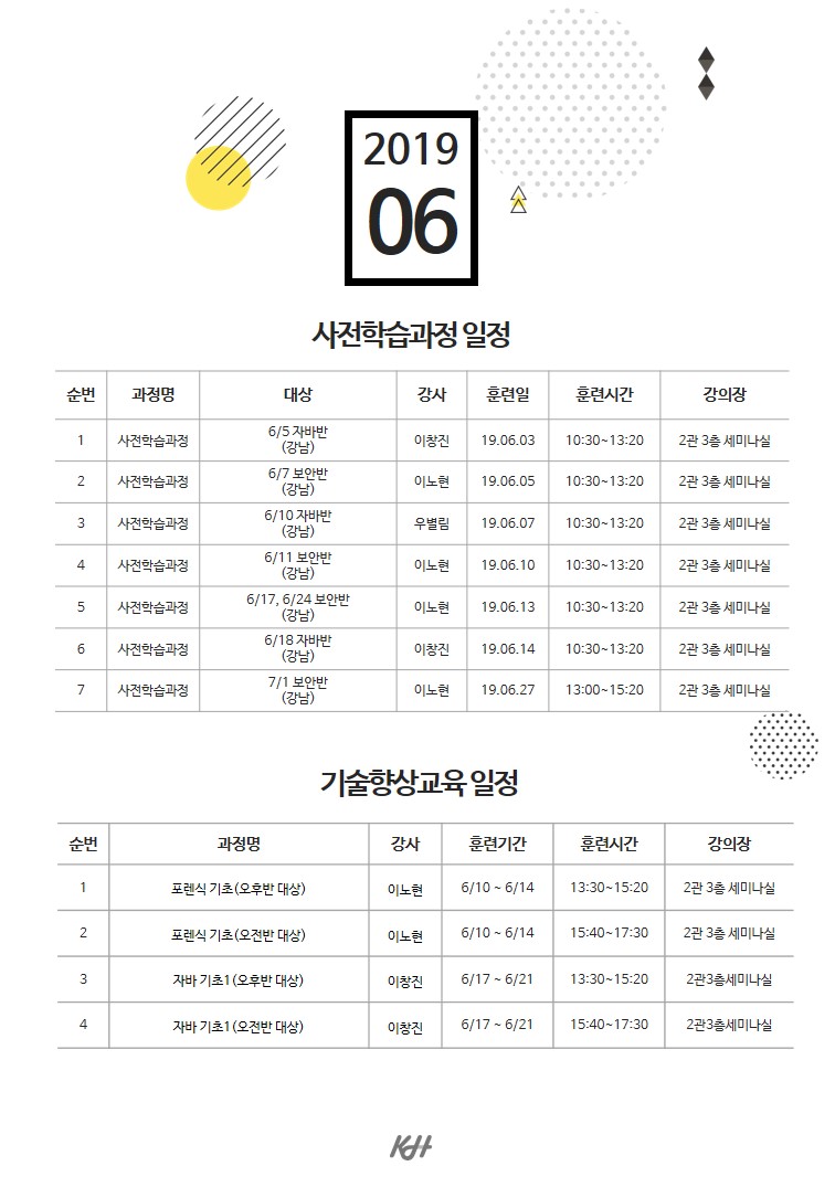 KH의 전 과정은 NCS(국가교육표준화)기준을 준수하며 최대 100% 무료 국비지원을 받으실 수 있습니다.