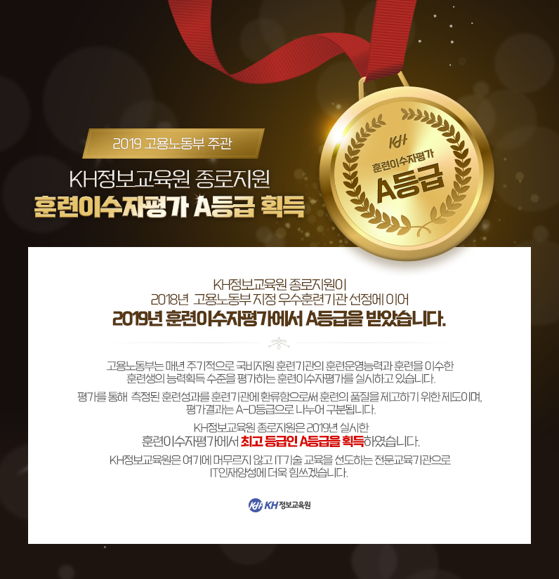 KH정보교육원 종로지원 훈련이수자평가 A등급 획득