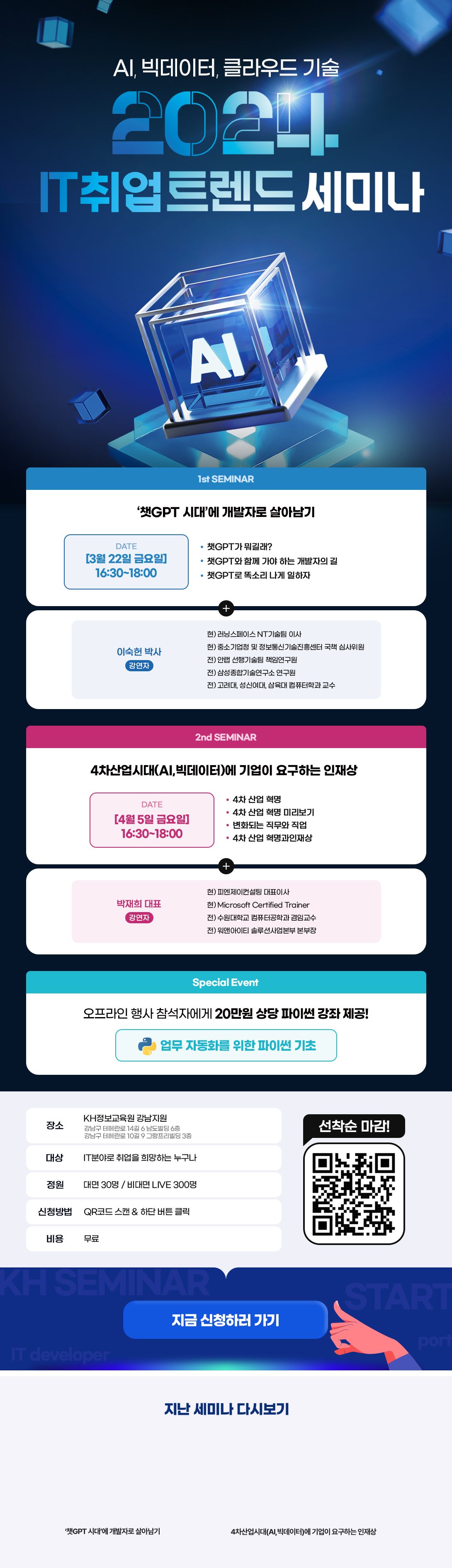수료생과 함께하는 KH정보교육원의 다양한 소식을 만나보세요.