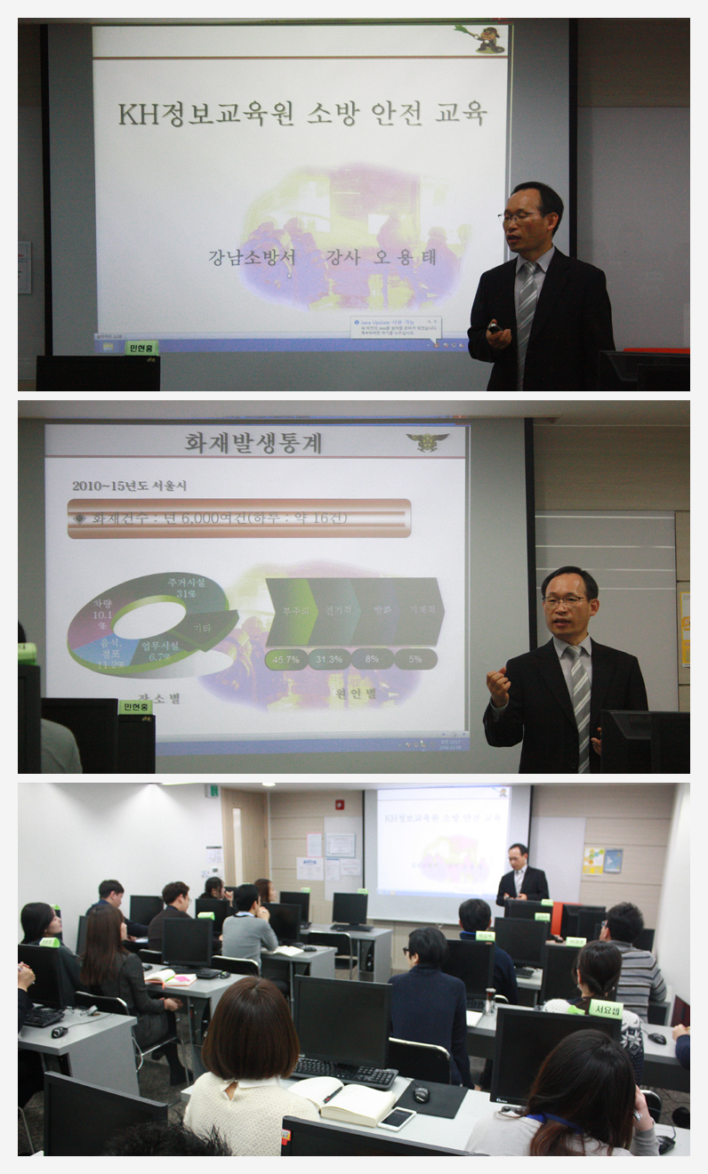 강남소방서 홍보교육팀의 오용태 강사님을 모시고 KH 전 직원들이 소방안전교육을 받았습니다.