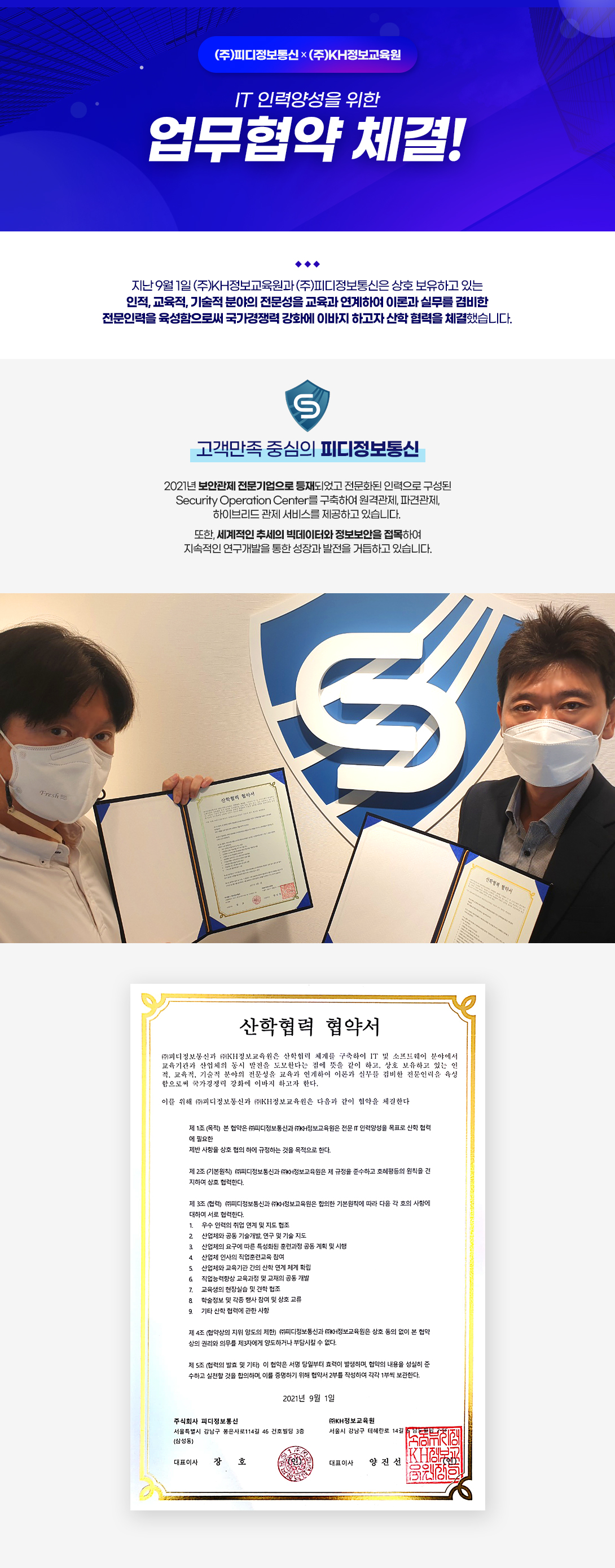 (주)피디정보통신/KH정보교육원 업무협약 체결