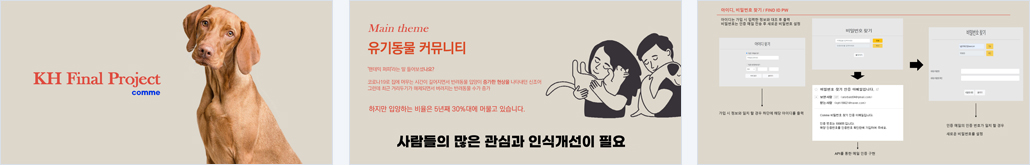 1. 코로나 팬더믹 이후, 유행처럼 번지기 시작한 반려동물(팬더믹 퍼피) 2. 거리두기가 점차 해제되면서, 버려지는 유기동물의 수가 급증 3. 반려동물과 유기동물에 대한 사람들의 인식 개선과 이를 바탕으로 한 웹사이트의 필요성 |