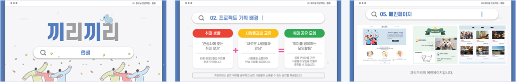 사용하기 어려운 사이트가 많고, 결제를 요구하는 곳이 많아 일반적인 커뮤니티 기능과 모임의 공존을 극대화한 사이트를 구성하고 싶었습니다. ‘끼리끼리’는 개인의 취미 공유와 취미 모임 형성을 위한 사이트입니다. 개인의 관심사를 대중에게 알리며 같이 활동하고 싶은 사람들과 교류를 맺는 공간을 마련해주는 모임 커뮤니티 사이트입니다. |