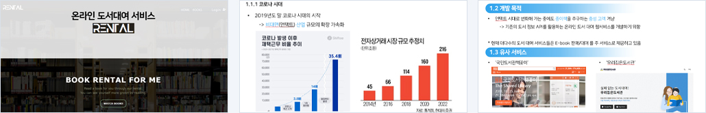 - 로그인, 회원가입 - 관리자 페이지 - 대여 가능 책 검색(카테고리별, 알파벳 순 등) - 후기 작성 - 카트에 담기 |
