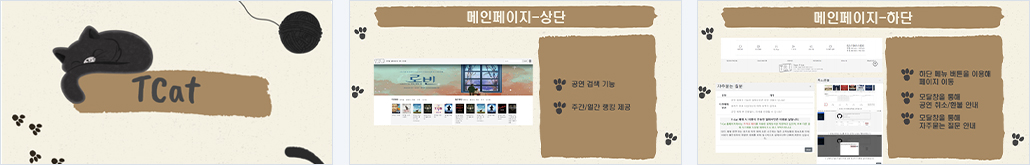 회원 - 회원가입(주소API, 아이디 중복확인)/ 로그인, 로그아웃/ ID, PWD찾기/ PWD재설정 마이페이지 - 회원정보 수정 및 탈퇴/ 찜한 뮤지컬/ 예매 내역/ 내가 쓴 후기 수정 & 삭제/ 회원탈퇴 뮤지컬 목록 페이지 - 검색, 필터별 정렬 뮤지컬 상세 페이지 - 오픈 데이터 api 활용 후기 페이지 - 각 공연장 좌석별 후기 검색 및 작성, 뮤지컬별 후기 작성 및 삭제 예매 페이지 - 캘린더(날짜 선택), 등급별 좌석 선택 및 결제 -------------------------------------------------------------------——— 뮤지컬에 대한 정보를 보기 좋게 안내 - 메인 화면에 별점순, 인기순으로 뮤지컬 정보 안내 - 해당 공연에 대한 좌석 후기 및 전반적인 공연에 대한 후기를 별점으로 제공 - 뮤지컬 공연 정보 및 후기를 안내하는만큼 사용자의 가시성을 고려하여 이미지에 비중을 두어 구현 -------------------------------------------------------------------- - 찜한 공연에 대한 알림 설정을 통해 티켓팅 일정 안내 - 관리자 페이지를 통한 유료 멤버십 회원 관리 |