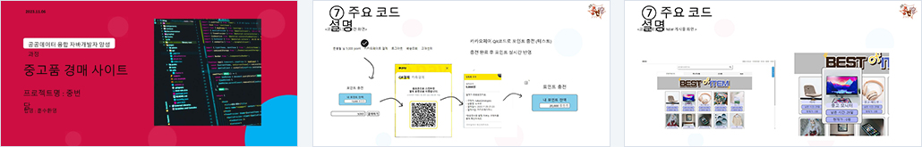 - 즉시 구매 가능 물품에 대하여 즉시 구매 및 실시간 경매 참여 서비스 제공 - 카카오 페이 API를 통한 포인트 구매, 포인트로 낙찰 및 구매 기능 제공 |