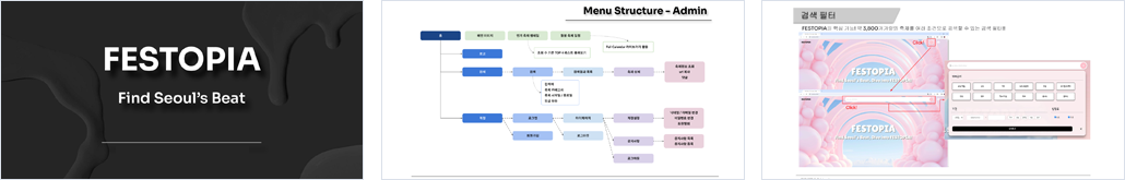 - 웹사이트 주제에 맞춰서 축제를 연상하는 밝은 분위기의 사이트 구성에 초점