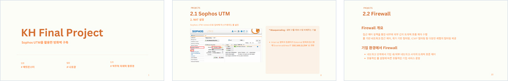 최근 들어 원격근무의 일상화와 더불어, 사이버 위협이 갈수록 다양화됨에 따라 기업의 업무망을 보다 정밀하게 보호할 수 있는 네트워크 보안 체계의 필요성이 강조되고 있다. 본 프로젝트는 Sophos UTM이 제공하는 다양한 보안 기능 WAF(Web Application Firewall), ACL(Access Control List), IPS(Intrusion Prevention System), 웹 필터링(Web Filtering), VPN(Virtual Private Network)을 종합적으로 사용하여, 외부로부터의 비인가 접근을 효과적으로 차단하고 내부 자산에 대한 침해를 방지할 수 있는 종합 보안환경 구축을 목표로 한다. |