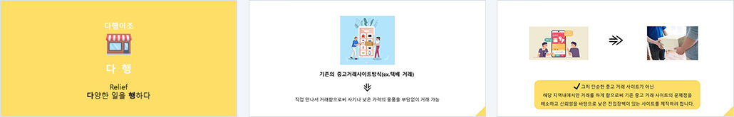 단순한 중고 거래 사이트가 아닌 해당 지역 내에서만 거래를 하게 함으로써 기존 중고 거래 사이트의 문제점을 해소하고 신뢰성을 바탕으로 진입 장벽이 낮은 사이트를 제작함 |