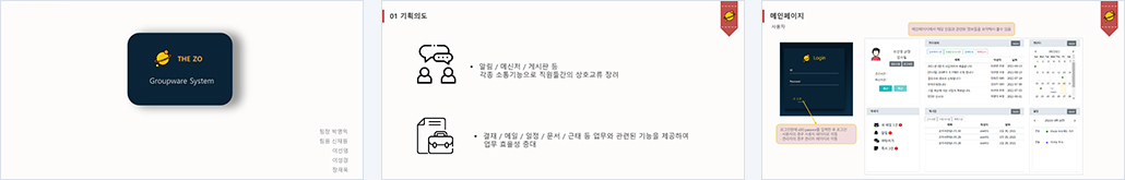 - 메인페이지: 로그인, 전반적인 overview 제공 - 전자결재: 조회, 상신, 회수, 승인 및 반려. 결재선설정, 의견, 관리자 승인 반려, 양식관리 - 메일: smtp, pop3 연동 메일 발신 수신 삭제, 보관함 이동 - 조직도: 조직트리, 전사원 연락처 확인 - 메신저 : 모든페이지에서 사용 가능한 메신저 WebSocket (SockJS 라이브러리)를 통한 실시간 개인채팅, 단체채팅, 쪽지, 쪽지신고하기, 알림 기능 - 관리자 메신저 : 알림 등록 수정(재 알림) 삭제, 쪽지신고처리(쪽지 기능 제한) - 관리자메인페이지 : 사이트관리기록대장, 년단위 전사원 평균근무시간 통계차트 , 년단위 입퇴사자 통계차트, 조직, 부서별, 전체사원 인원현황 통계 - 게시판(공지,일반,벼룩) : 게시글 등록, 조회, 수정, 삭제, 신고 및 댓글 작성, 삭제, 신고, 벼룩시장 찜하기 , 찜목록 조회, 신고글 조회, 처리 - 회원 정보 : 사원등록, 사원수정, 사원삭제 - 문서양식 : 게시글 카테고리별 조회, 등록, 수정, 삭제, 검색 - 일정관리 : 풀캘린더 API 연동 일정 조회, 일정 등록, 수정, 삭제, 필터 기능, 일정 관련 업무보고서 조회, 등록, 수정, 삭제 - 자원예약 : 풀캘린더 API 연동 타임라인 조회, 나의 예약목록 조회, 자원예약 등록, 수정, 삭제 - 노트관리 : 노트 조회, 등록, 수정, 삭제, 검색, 노트와 관련된 일정 조회 - 근태관리 : 출·퇴근 입력, 조회, 수정, 휴가 신청 관련 데이터 입력, 수정, 조회 - 환경설정 : 회사 정보 입력, 이미지 첨부 및 미리보기, 수정, 조회 - 인사관리 : 부서 입력, 삭제, 수정, 조회 |