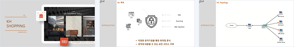 - XSS, SQL Injection, scanning 공격을 통해 취약점 분석 - 방화벽을 이용하여 보안 강화 |
