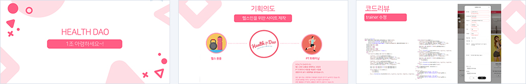 - PT 신청 목록 ( 해당 유저가 PT를 신청한 리스트 출력 -> 해당 트레이너 상세페이지, 리뷰페이지 이동, 신청 상세 기능 )