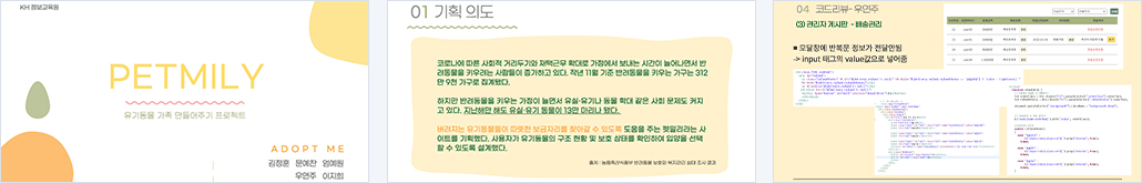 따라서 버려지는 유기동물들이 따뜻한 보금자리를 찾아갈 수 있도록 도움을 주는 petmily라는 사이트를 기획했다.