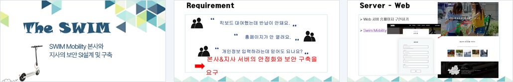 개요 공유 킥보드 업체(SWIM MoBility) 사업 서비스의 서버 안정화를 위해 보안 설계와 침투 테스트를 계획하였다.